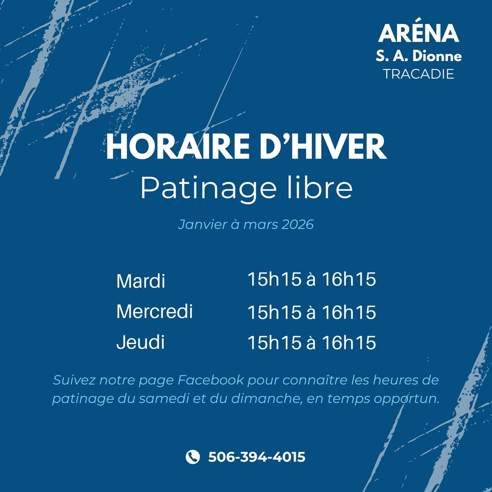 During the winter season, the Arena offers free skate sessions, senior, minor and recreational hockey as well as figure skating. The Arena is also available for rental.