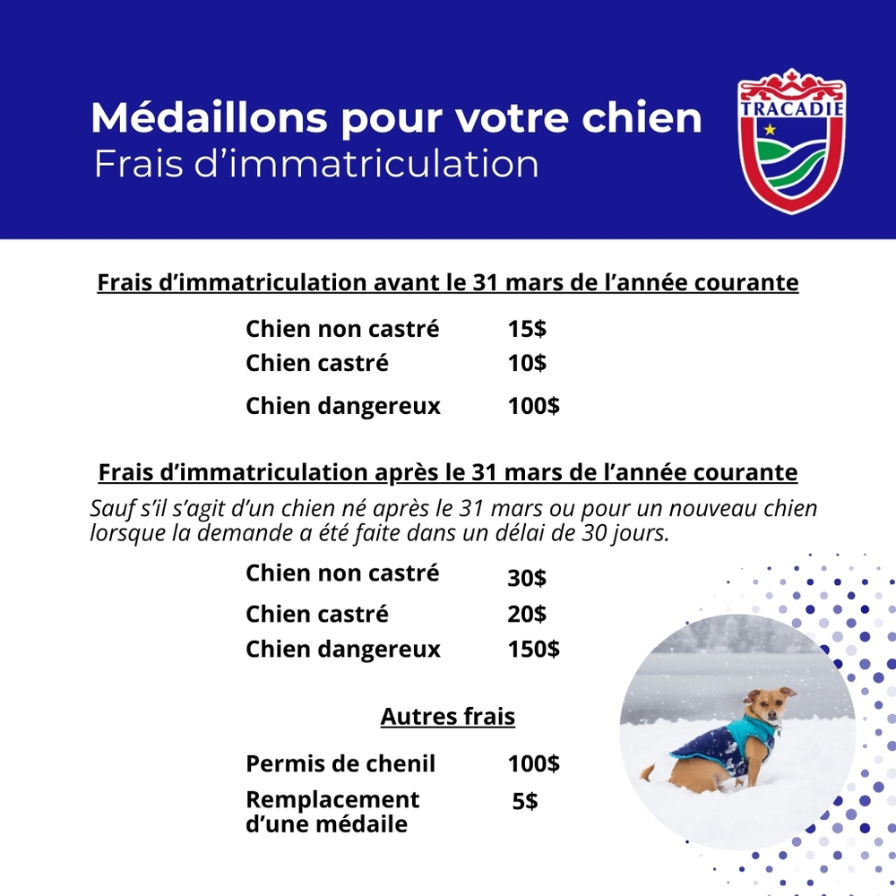 Lire la suiteIl est rappelé aux propriétaires de chien de tous les quartiers de la Municipalité régionale de Tracadie que, conformément à la loi provinciale, ils doivent obligatoirement enregistrer leur chien avant le 31 mars 2026.